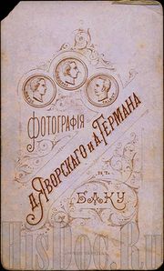 | 15:43, 11 августа 2015 | Bakuphoto.jpg (файл) | 58 Кб | Фотоателье Яворского и Германа в Баку | 1 | |