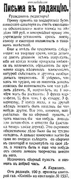| 16:13, 22 апреля 2017 | Buzovny-detsanat-3.jpg.jpg (файл) | 371 Кб | Письмо в редакцию газеты "Каспий" о пожертвовании в пользу детского противотуберкулезного санатория в Бузовнах (октябрь 1917 г.) | 1 | |